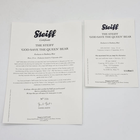 Steiff 663345 God save the Queen Teddybär Jahr 2015 exklusiv Danburry Mint 32cm