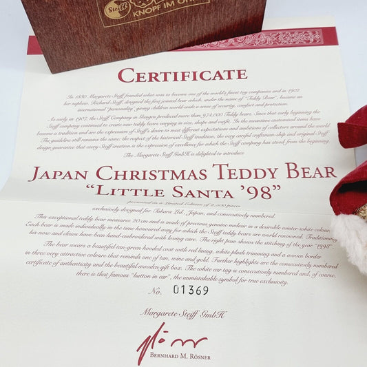 Steiff Japan Christmas Weihnachtsteddybär Little Santa 1998 limitiert 652776