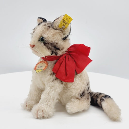 Steiff Katze Susi 22 cm 3322,00 Knopf, Fahne und Brustschild Jahr 1959 - 1963