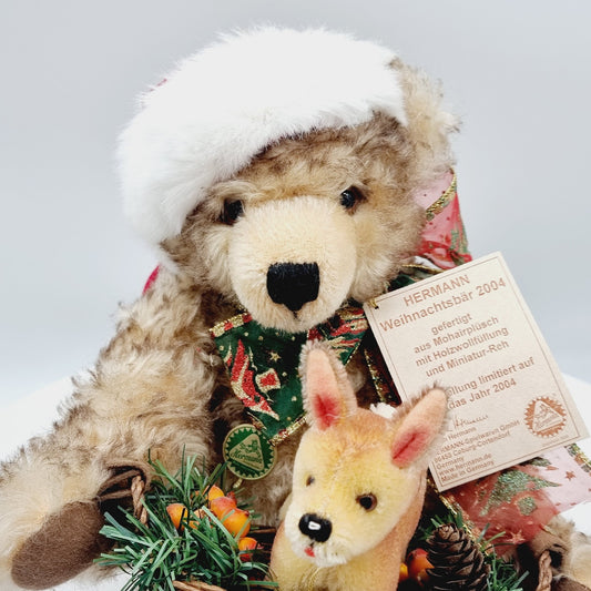 Hermann Coburg 15995-5 Weihnachtsbär 2004 mit Reh limitiert 2004 40 cm Mohair