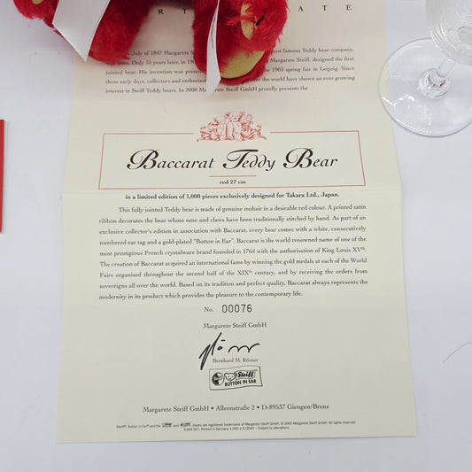 Steiff 675362 Baccarat Teddybär Set 27 cm rot Jahr 2000 exklusiv Takara Japan