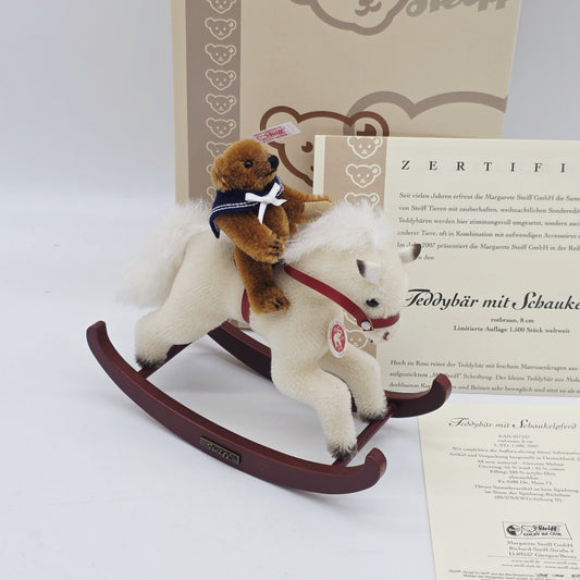 Steiff 037337 Teddybär mit Schaukelpferd limitiert 1500 aus 2007 8 cm